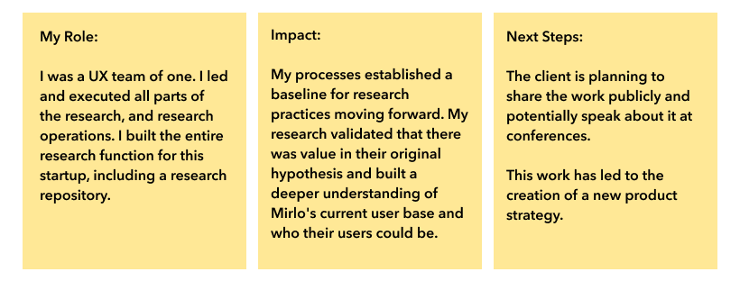 An foundational study to inform product strategy and direction. B2C research identifying a musician's core motivations, pain points, and reasons for platform usage.